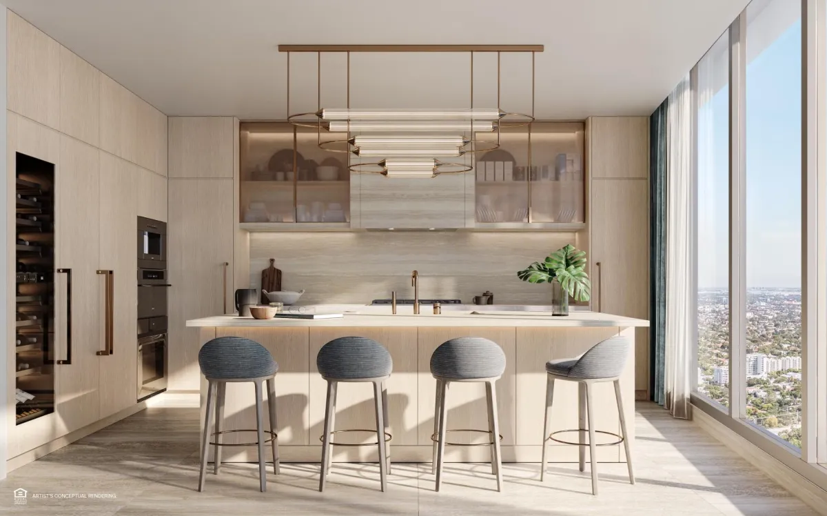 Con casi 50 pisos de altura, las torres ofrecen vistas panorámicas de la Bahía de Biscayne, Key Biscayne y el skyline de Miami. Cada residencia cuenta con: